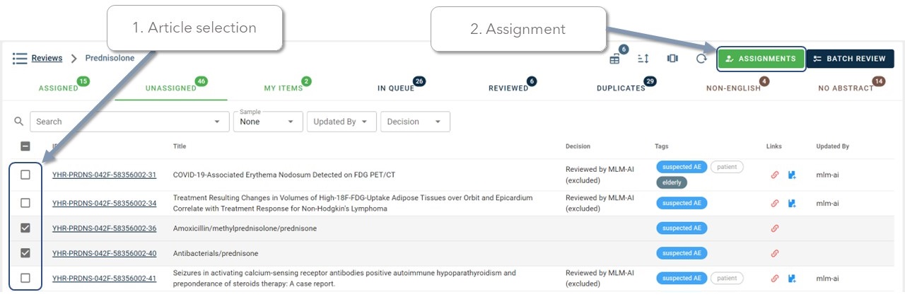 Supervisors can assign, or configure MLM-AI to automatically assign abstracts for review to team members