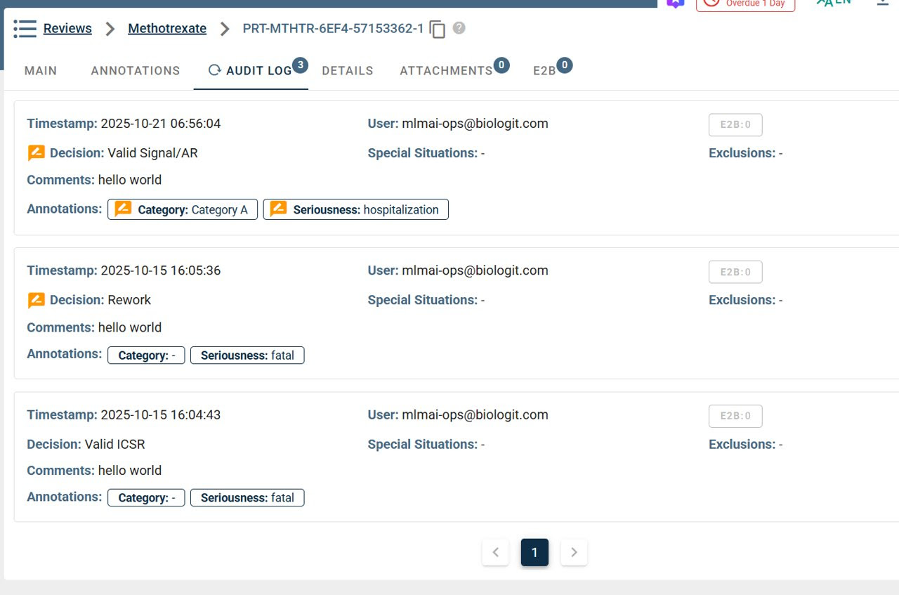 Decision overrides notification: users are now prompted when overriding a decision that may erase previously completed annotations or E2B data